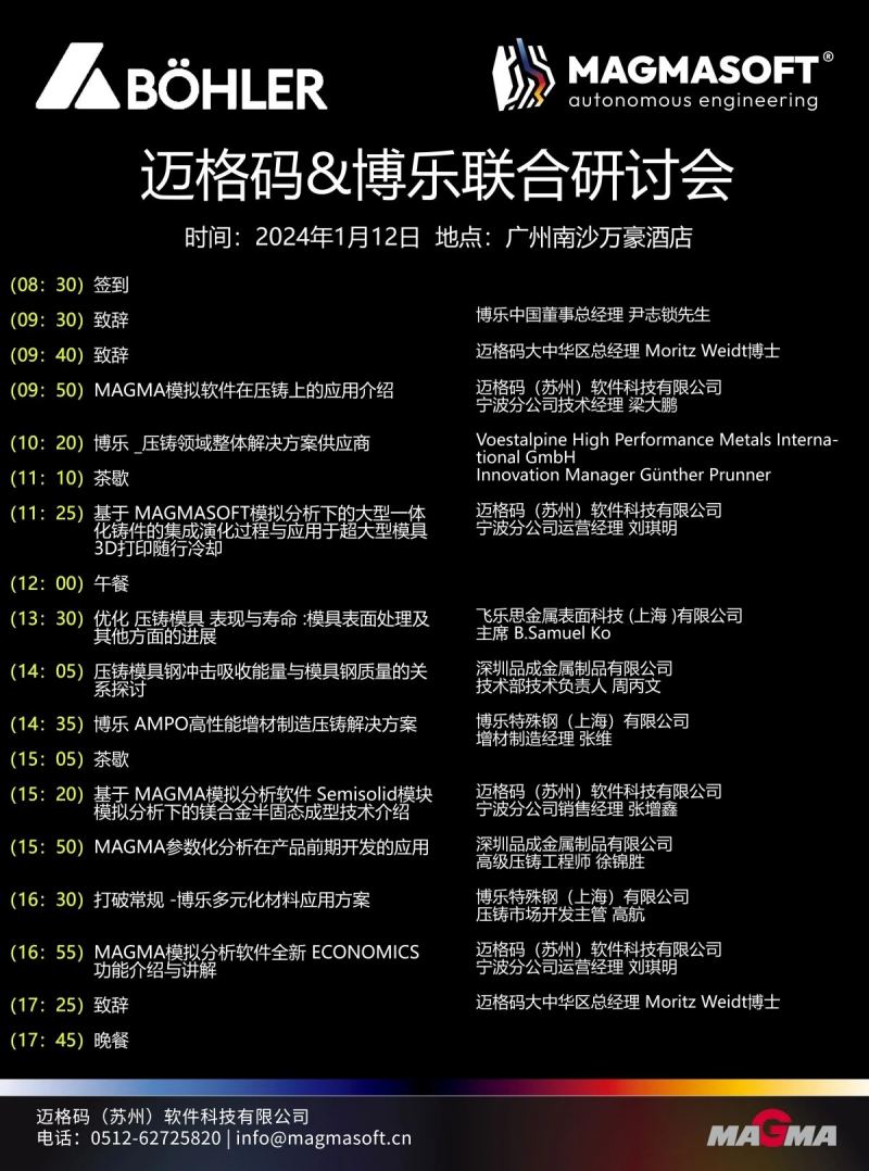 邁格碼&博樂1月12日在廣州舉辦"壓鑄專場研討會"。